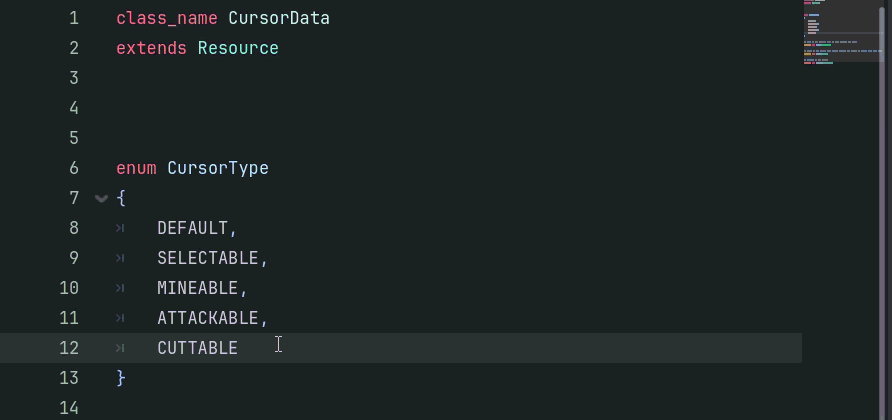 Go the cursor_data.gd file in the Data folder and add your cursor type to the enum.
